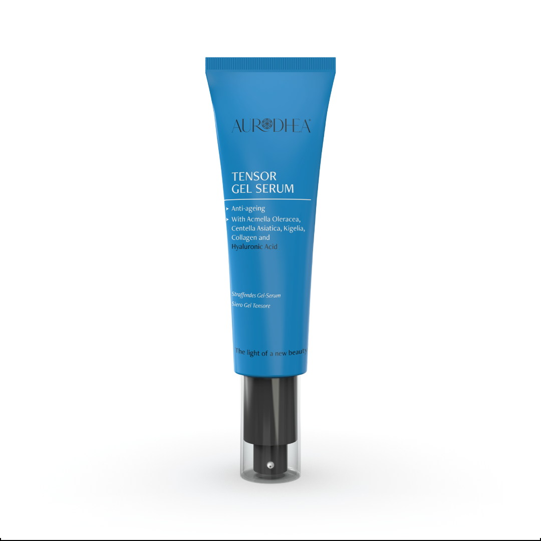 Anti-ageing Tensor Gel Serum by Aurodhea boosts face hydration, making it instantly more radiant. Its formula, easily and effectively absorbed by the skin, has an anti-ageing action: Hyaluronic Acid is a strong skin moisturizer, while Acmella Oleracea, often referred to as 'natural botox', gradually relaxes the muscles, reduces the micro-contractions that cause expression lines, firms and compacts the skin.